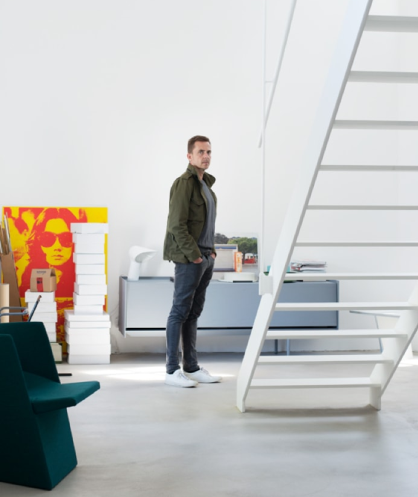 อีริก ดีเจอนฮาด ศึกษาสถาปัตยกรรมที่อาเค่น(มหาวิทยาลัยในเยอรมนี)การนำแนวคิดเรื่องพื้นที่และสถาปัตยกรรมมาใช้เป็นขั้นตอนที่สมเหตุสมผลในการก้าวต่อไปจากระดับใหญ่ไปสู่ระดับที่เล็กกว่า เขาเปลี่ยนโฟกัสไปที่การออกแบบเฟอร์นิเจอร์และอุตสาหกรรม - หลังจากใช้เวลาในลอนดอน นับตั้งแต่ก่อตั้งสตูดิโอ เขาได้พัฒนาเฟอร์นิเจอร์ผลิตภัณฑ์อิเล็กทรอนิกส์และพื้นที่ทางสถาปัตยกรรมสำหรับลูกค้าต่างประเทศ