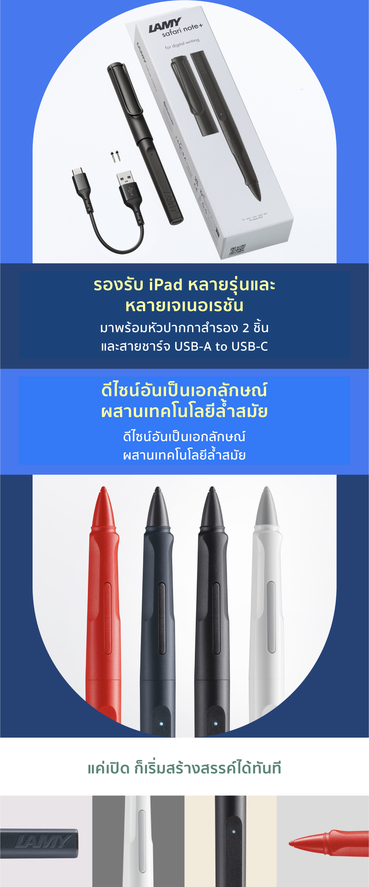 Its distinctive and distinctive design, perfect ergonomics, and top-quality construction make the LAMY Safari Note+ a true writing instrument for the digital world. Perfect for anyone in the Apple ecosystem, the LAMY Safari Note+ is the only model in its class with an ergonomic design and a protective tip cap. Available in a variety of colors, the LAMY Safari Note+ reflects the proven Lamy tradition of self-improvement and uniqueness through its color selection. Simply power it on and start using it: whether you're drawing, painting, organizing, editing photos, editing videos, or playing games, the LAMY Safari Note+ is your perfect companion for everyday use at work, at university, or at school. It offers a writing experience that goes beyond simple note-taking it's precise, responsive, and inspiring. The potential uses for LAMY digital writing instruments are virtually limitless. They allow every personality, every outlook on life, and every message to express themselves uniquely.
